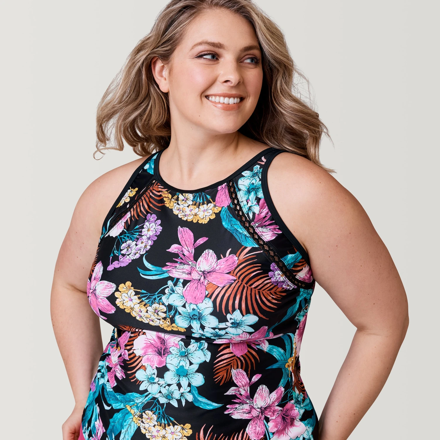 Women’s Plus Size Bali Tropical High Neck Tankini Top